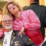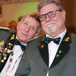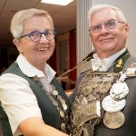 Sichtlich gerührt und unter einem Regen aus goldenen Konfetti-Streifen erhielt der neue Schützenkönig Dieter Rößmann, fortan mit dem Beinamen „der Pflichtbewusste“, die Königskette von Chantal umgelegt.