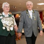 Unser König Dieter Rößmann „Der Pflichtbewusste“ wurde von seiner Ehefrau Friedel, die auch seine 2. Hofdame ist und der Filigrankönigin Anette Kruse, die auch 1. Hofdame ist, zum Einmarsch des Landeskönigsballs begleitet.