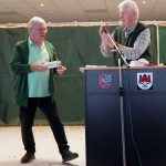 Nach dem ausgiebigen Frühstück überreichte Siegbert unserem neuen König Dieter „der Pflichtbewusste“ die Königsversicherung. 31 Mitglieder hatten eingezahlt und so kam die Summe von 1.150 € für unseren König zusammen.