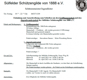 Eröffnungspokal / Jugendpokal Sülfelder Schützengilde 19. und 26.04.