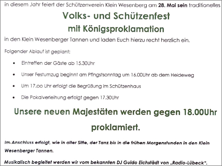 Klein Wesenberg 28.Mai: Volks- und Schützenfest