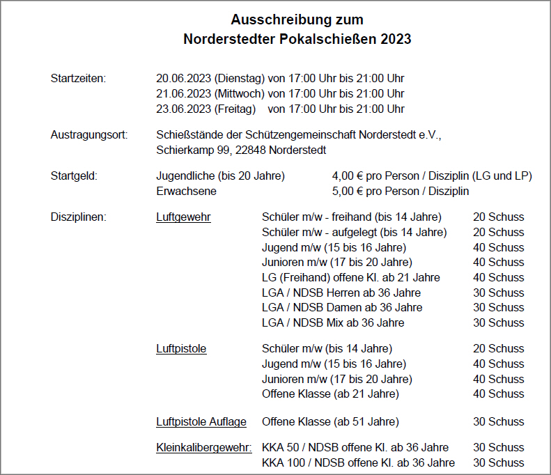 Pokalschießen Schützengemeinschaft Norderstedt 20.06. – 23.06.2023
