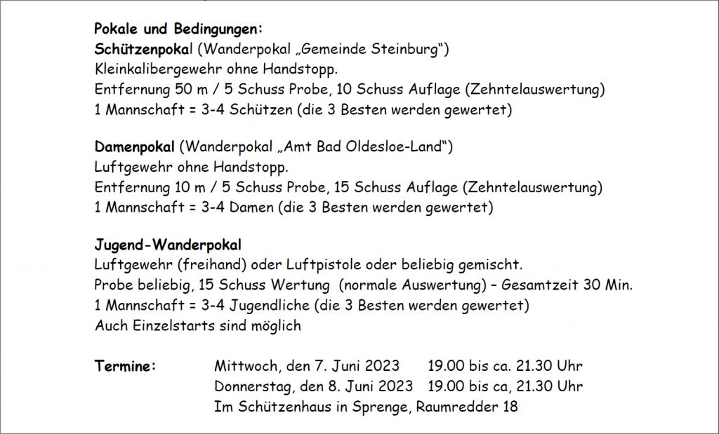 Pokalschießen Schützenverein Sprenge 07.06. – 09.06.2023